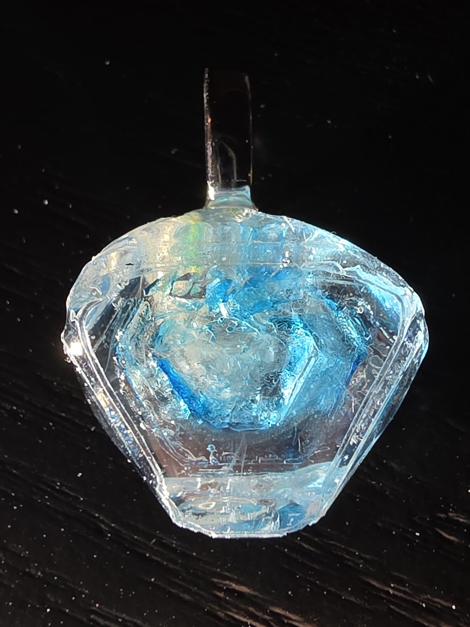 For the bail, I first used super glue directly on the crystal. That did not work very well. I also tried E6000, which worked better, but the bail only became reliably solid once the whole assembly was sealed into epoxy. The practical lesson is that glue can position the hardware, but the cured epoxy needs to become the real structure carrying the load.