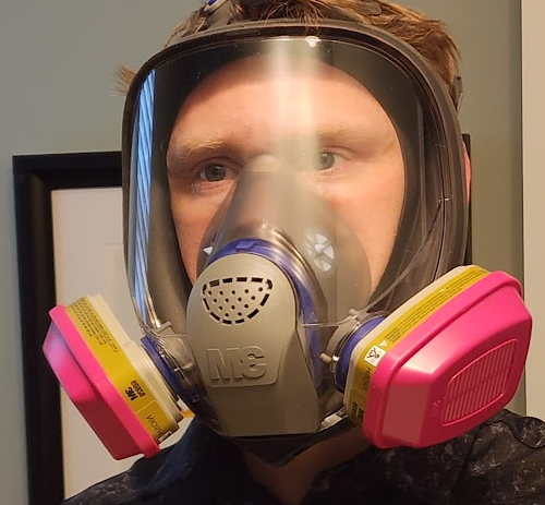 The acrylic spray and epoxy steps are a different category and not kid-friendly. Do those outdoors or in a genuinely well-ventilated setup. I used a respirator; for a 3M-style system, organic vapor cartridges are appropriate (e.g., 6001 with particulate prefilters or a combined OV/P100 cartridge like the 60921).